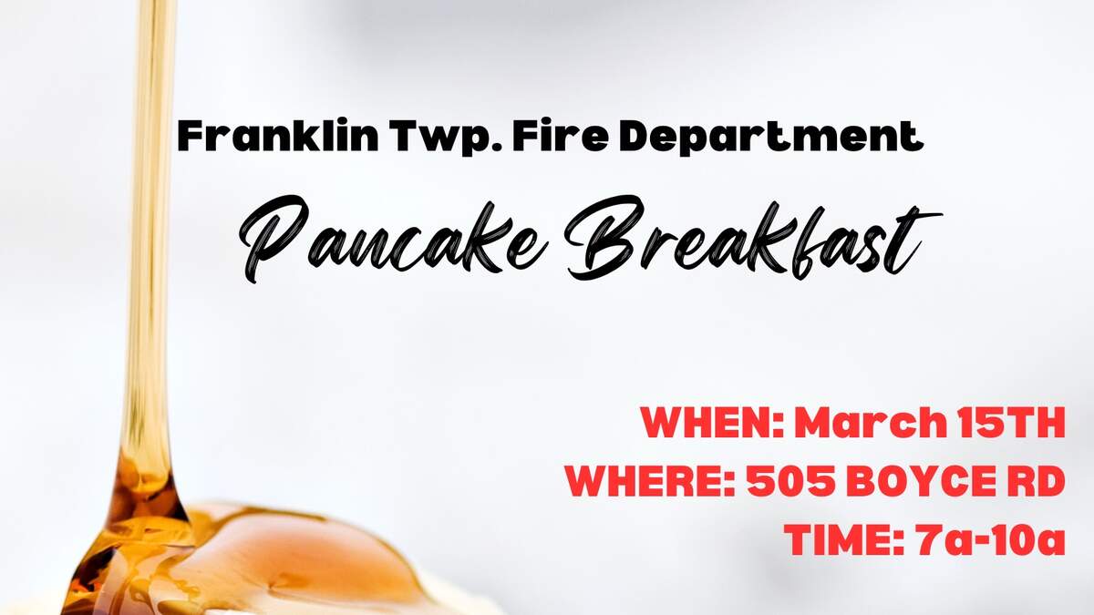 Join us for a delicious pancake breakfast at the 2025 Franklin Twp. Fire Dept. Pancake Breakfast! We're excited to see you all there and enjoy a tasty breakfast together.
