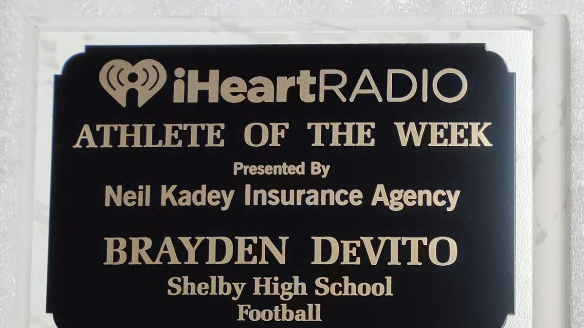 Shelby QB Brayden DeVito has been named our latest iHeart Radio "Athlete of the Week".